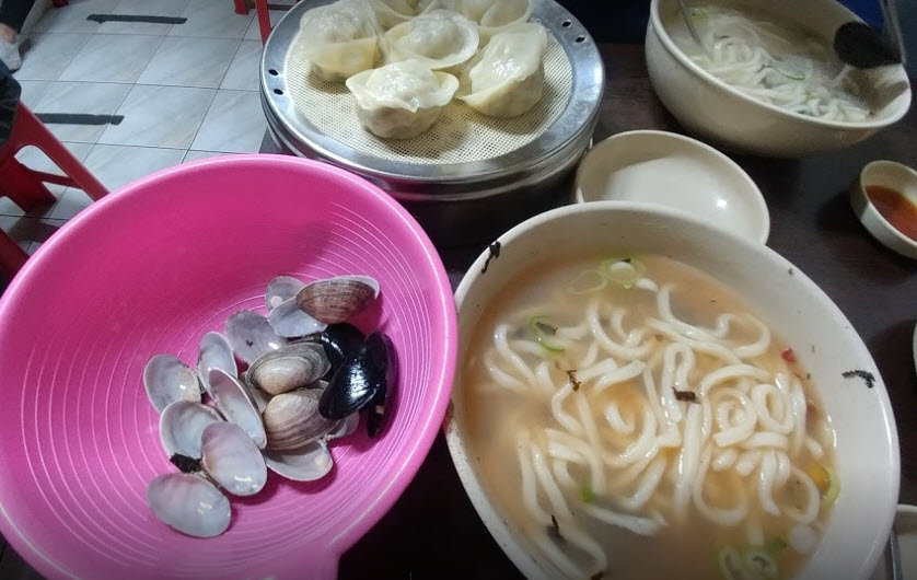 “오랜 전통에 방송에도 많이 나오고 빕구르망까지 화려한 수식어를 가진 집. 메뉴는 해물칼국수 그리고 만두 두종류 만두는 섞어서 주문 안되고 남은건 싸갈 수 있다. 칼국수 면이 두꺼운데도 푹 익혀서 나와 부담없이 먹을 수 있는점이 좋았다. 만두는 고기건 김치건 두부가 생각보다 많이 들어가서 내가 좋아하는 맛은 아니었다. 칼국수의 경우 1인당 하나씩 시켰을때 부족하면 면은 더준다고 한다. 국물이 멸치육수인가? 그런거에 애호박 넣어서 끓인 국물인데 심심하면서도 나쁘지 않다.”