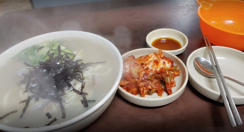“칼국수는 큼지막한 홍합이랑 바지락 국물이 시원하고 좋습니다. 만두도 소가 푸짐하고 담백해서 아주 맛있네요. 성인 4명이서 칼국수에 고기만두 한 접시 시키니 배가 든든할 정도로 양도 푸짐해요. 다만, 미슐렝 맛집이라고 너무 큰 기대는 하지 마시길...”