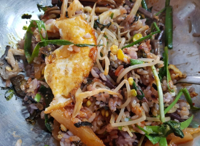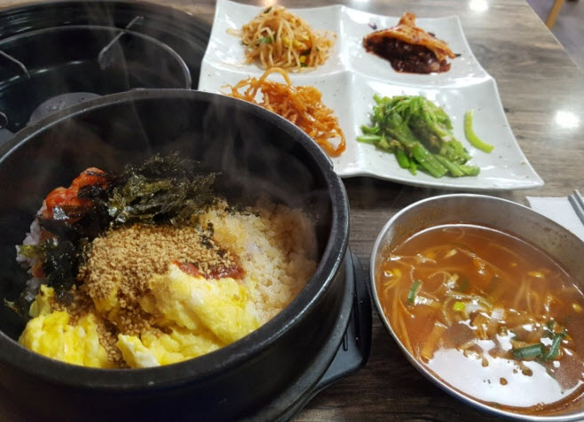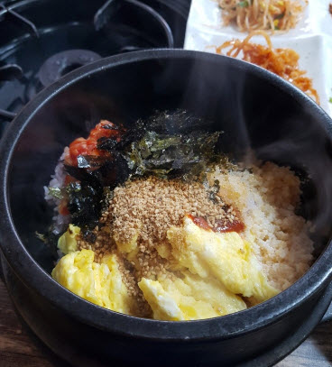 “날치알 돌솥비빔밥 - 오늘의 메뉴로 나온 알밥(사장님이 부르는 명칭) 양 푸짐하고 맛있다. 이가게 컨셉이기도 하고 상호이기도 한 배터지는 집 컨셉에 맞게 평소 많이먹는 내게도 배부르는 양이다.” |