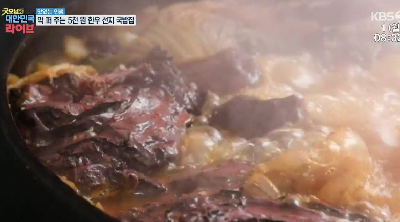 선지 역시 신선한 선지를 물에다가 직접 넣고 한번 끓여서 익한 다음에 한우국밥에 넣어서 사용한다고 합니다. 이렇게 제대로 된 한우 선지국밥을 맛볼 수 있기에 사람들이 많이들 찾는 것 같다고 말을 하네요.