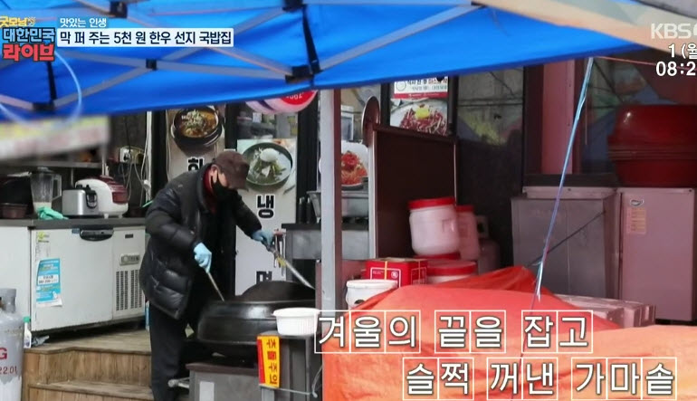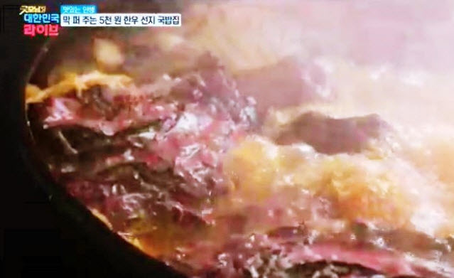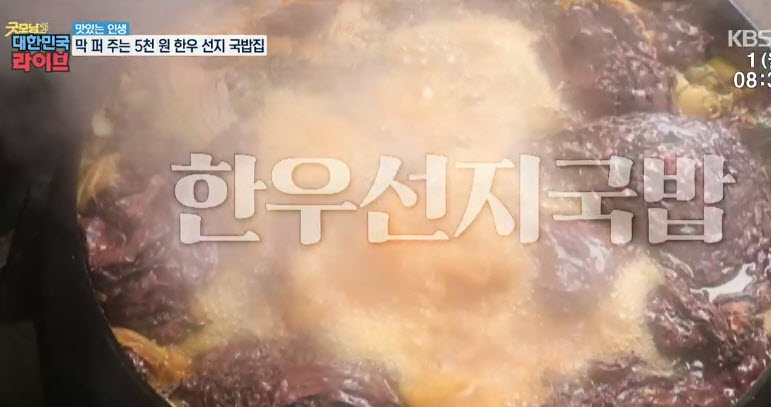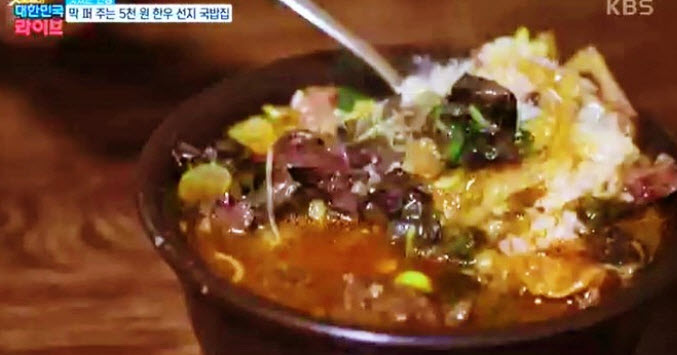 “안성 중앙시장 내 위치한 한우국밥 맛집으로 특이하게도 선지를 넣어준다고 한다. 더군다나 맑고 담백한 육수가 인기가 좋다고 한다. 더군다나 단돈 5천원에 푸짐하게 내어주는 곳으로 이미 다른 매스컴에도 많이 나왔을만큼 유명세를 떨치는 곳이라고 한다.”