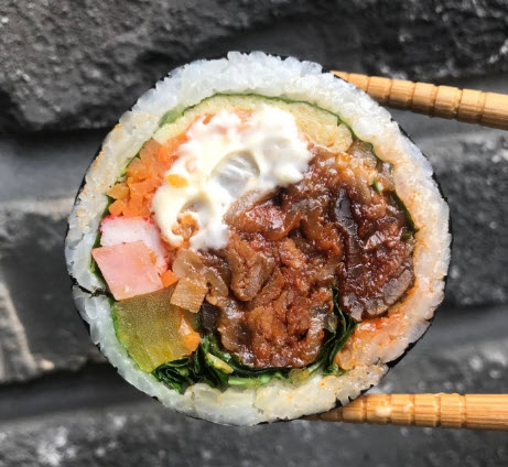 “진짜 한끼 식사. 김밥 한줄 먹는데 뭔가 백반집에서 밥 먹는 엄청 든든한 느낌. 불갈비마요는 맛있긴 하지만 매운거 못 먹는 사람한테는 매울 수 있음.”