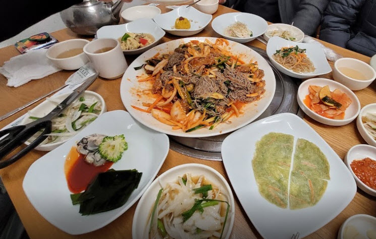 “먹느라 사진은 다 못 찍었는데 수육무침, 돼지갈비, 육회, 들깨 칼국수 를 시켰어요. 다 맛있었는데 수육무침과 육회가 특히 맛있었습니다!! 수육무침은 메뉴 자체도 여기서 처음 먹어봤어요! 직원분들이 친절하지 않아서 조금 마음이 상하기는 했지만 맛있었으니... 기회가 되면 또 갈 것 같아요. ㅎ”