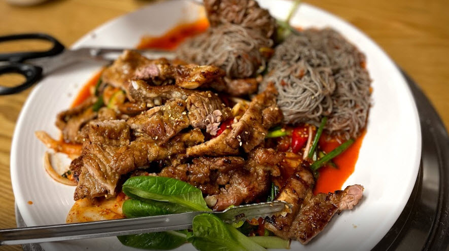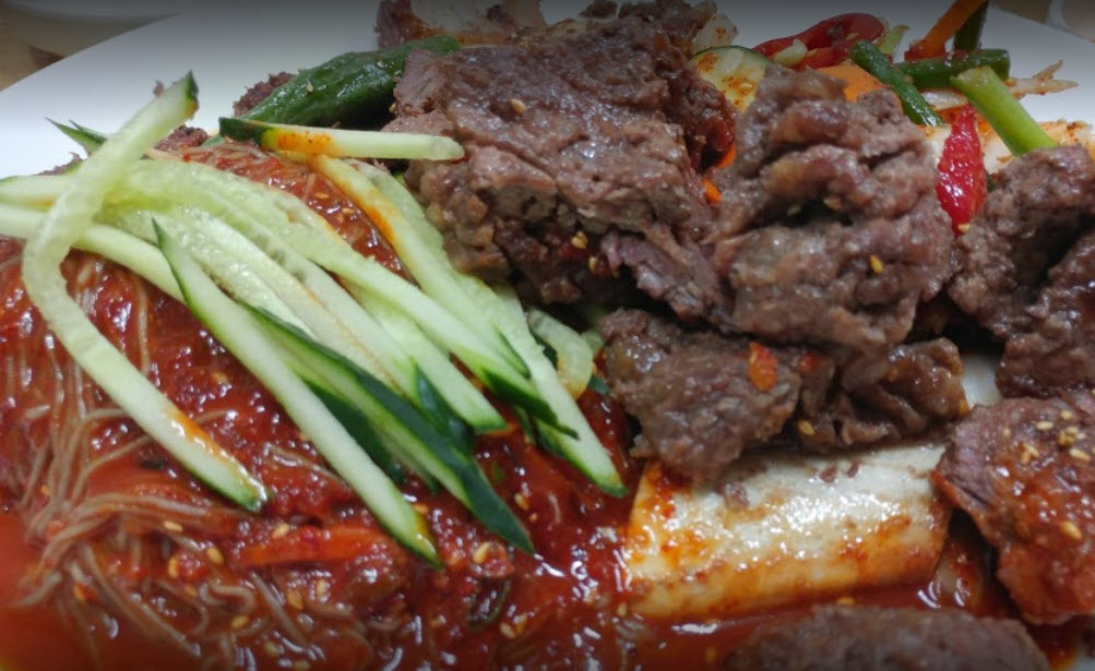 양념돼지갈비 15,000원 낙지회비빔냉면 12,000원 |