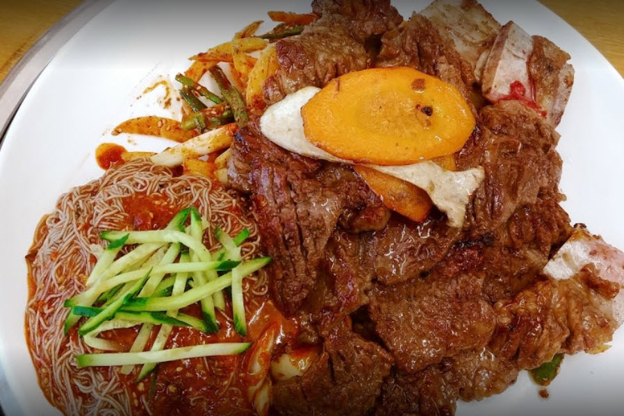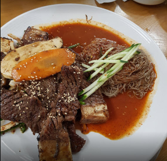 “자극적이지 않은 맛. 오래된 멋과 맛을 간직한. 오랫동안 자리잡은 식당이라고 합니다. 주변에 주차 후 방문시 옛스러움과 멋스러움을 보여줬습니다. 비빔냉면 혹은 비빔막국수에 갈비를 올려 먹는맛에 기대를 많이 했었나봅니다. 육수로 식전 한껏 기대감도 있었죠. 가든 스타일의 멋진 식당에 면도 고기도 기억에 남기는 개인적으로 심심하다 느껴졌습니다. 면과 고기 모두다요.”