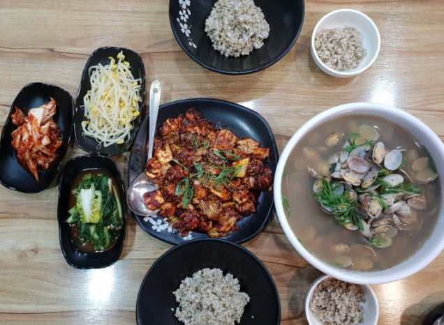 | Hi******* “불맛에 맛있게 매운 쭈꾸미볶음. 칼칼하고 맑은 메밀칼국수. 겆절이, 열무김치도 감칠맛남. 깨끗하고 거리두기 잘되는곳.” 남주**** “국물이 맛있네요. 면은 메밀면이라 부드럽고, 육수에 갖가지 채소가 들어가는지 음식에는 채소를 볼 수가 없어요..ㅋ 조개도 해감이 잘 되었고, 저흰 해물칼국수를 먹었는데 바지락, 홍합, 게, 전복(2개)가 들어있었어요~ 김치도 맛있었고, 보리밥에 강된장은 조금 짰어요~~” |