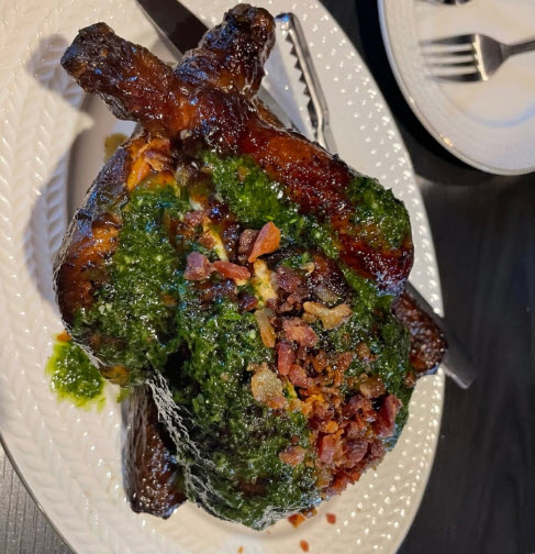 | Hb*** “정-말 맛있었어요. 서양탉 초이스 옳아요. 페스토 귀신이라 기대보다 맛있었어요. 소스는 트러플마요 잘 어울려요~ 장작구이라 고기가 촉촉하고 맛있네요. 구경하는데 친절한 설명 감사했어요^^ 태국닭도 기대되요, 여긴 소스맛집인 것 같아요. 서양탉에는 다른닭과 다르게 겉껍질안에 버섯시금치듁셀이 들어있어 별미!! 닭안에 들어있는 초리조찹쌀 정말 맛있구요. 주류도 다양하고 (와인 샴페인 고량주 맥주 등) 재방문해서 다른메뉴들 맛보고싶어요!” |
